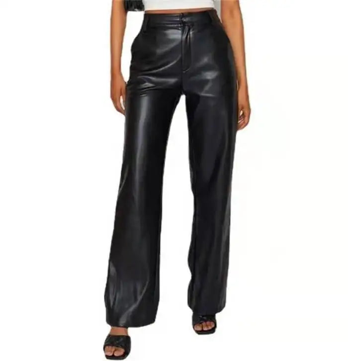 מכנסי עור אופנתיים בגזרה רחבה לנשים, מכנסיים ארוכים נוחים שכל אחת חייבת בארון שלה.